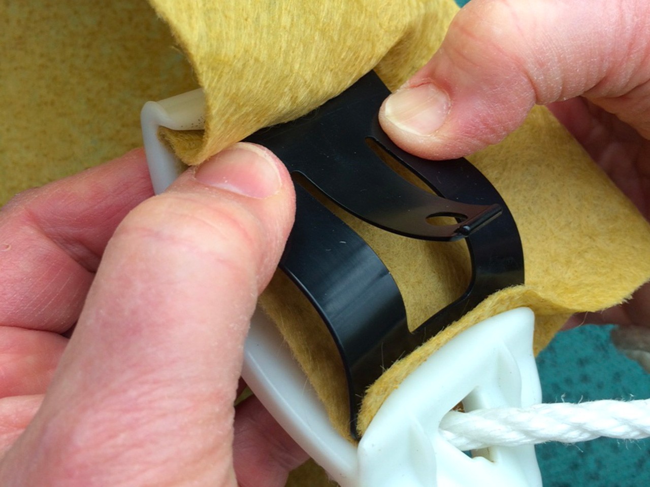 Composé d’une partie en plastique dure dans laquelle vient se clipper une partie en plastique souple, cette fixation permet de ne pas trouer la bâche. Il faut positionner un CLACPACK tous les mètres avec un maximum de 8 kg cela permet à la bâche d’être constamment tendue.